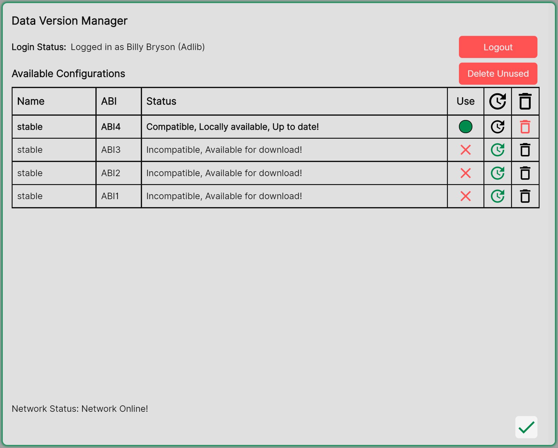 Click the green ‘use’ button to select the dataset for use once downloaded, and then click the green ‘tick’ to close the Data Version Manager and start using System Optimiser.