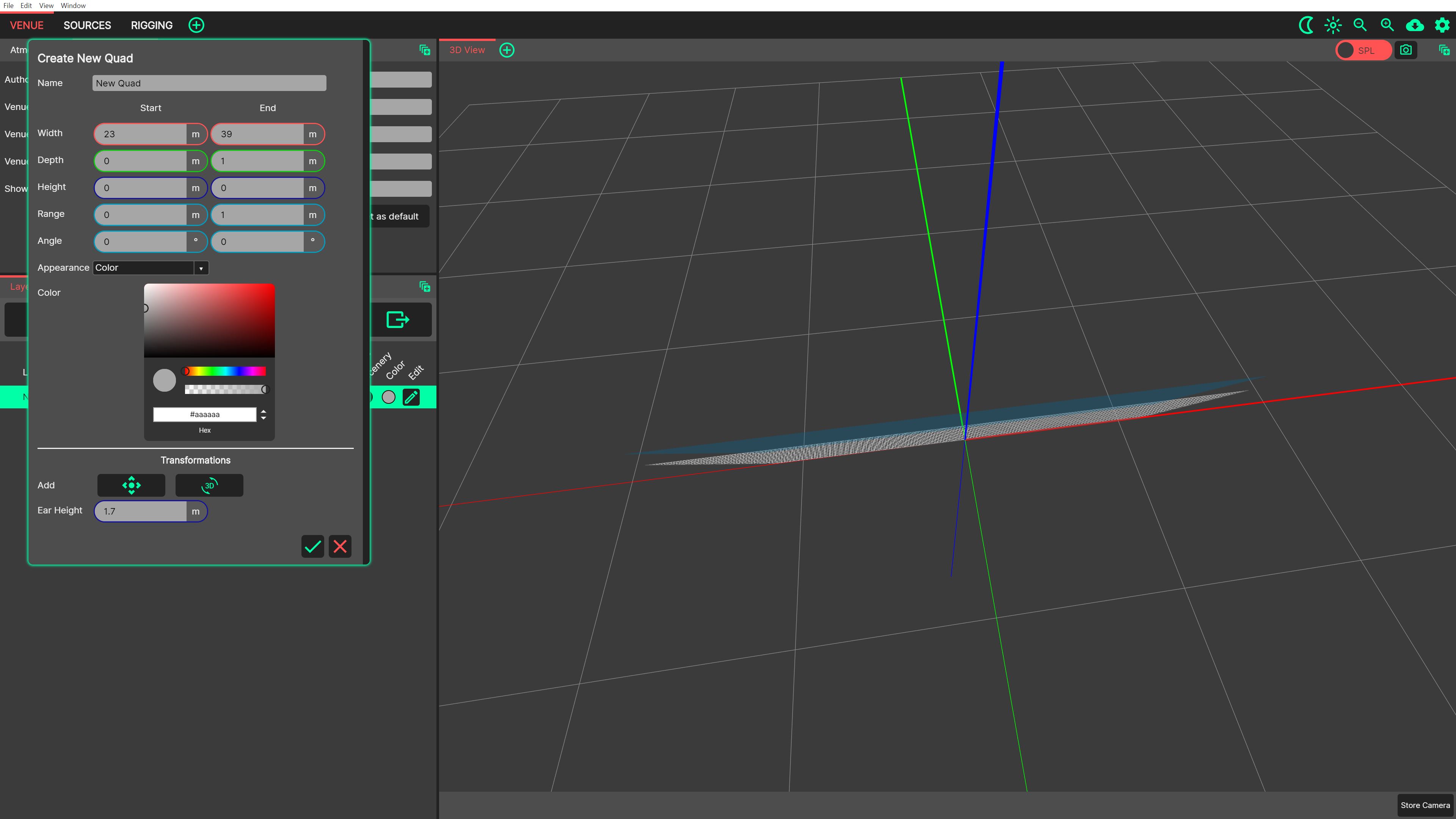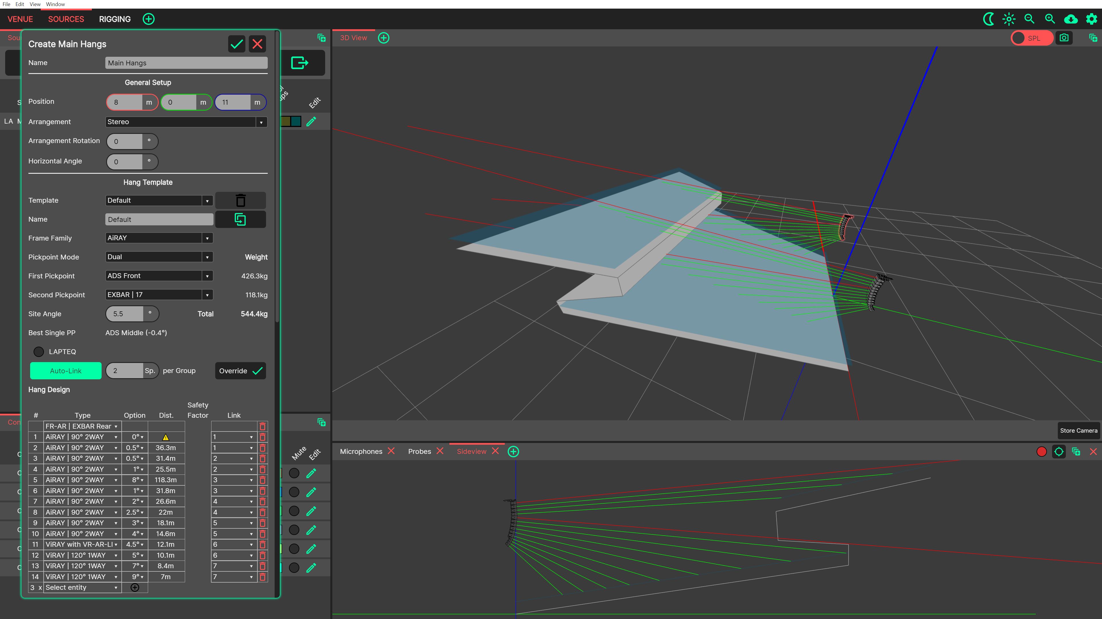 Creating a new SVA (Standard Vertical Array) using the second button on the Layer Manager’s top bar, we can name our source ‘Main Hangs’ and set its arrangement to stereo.