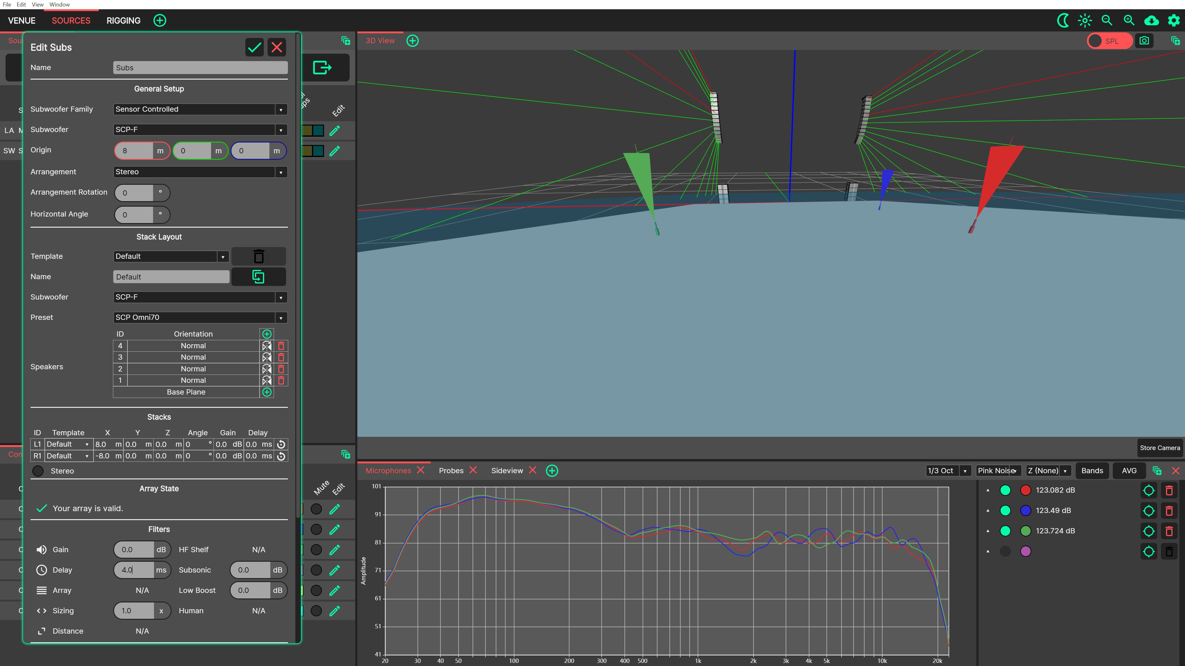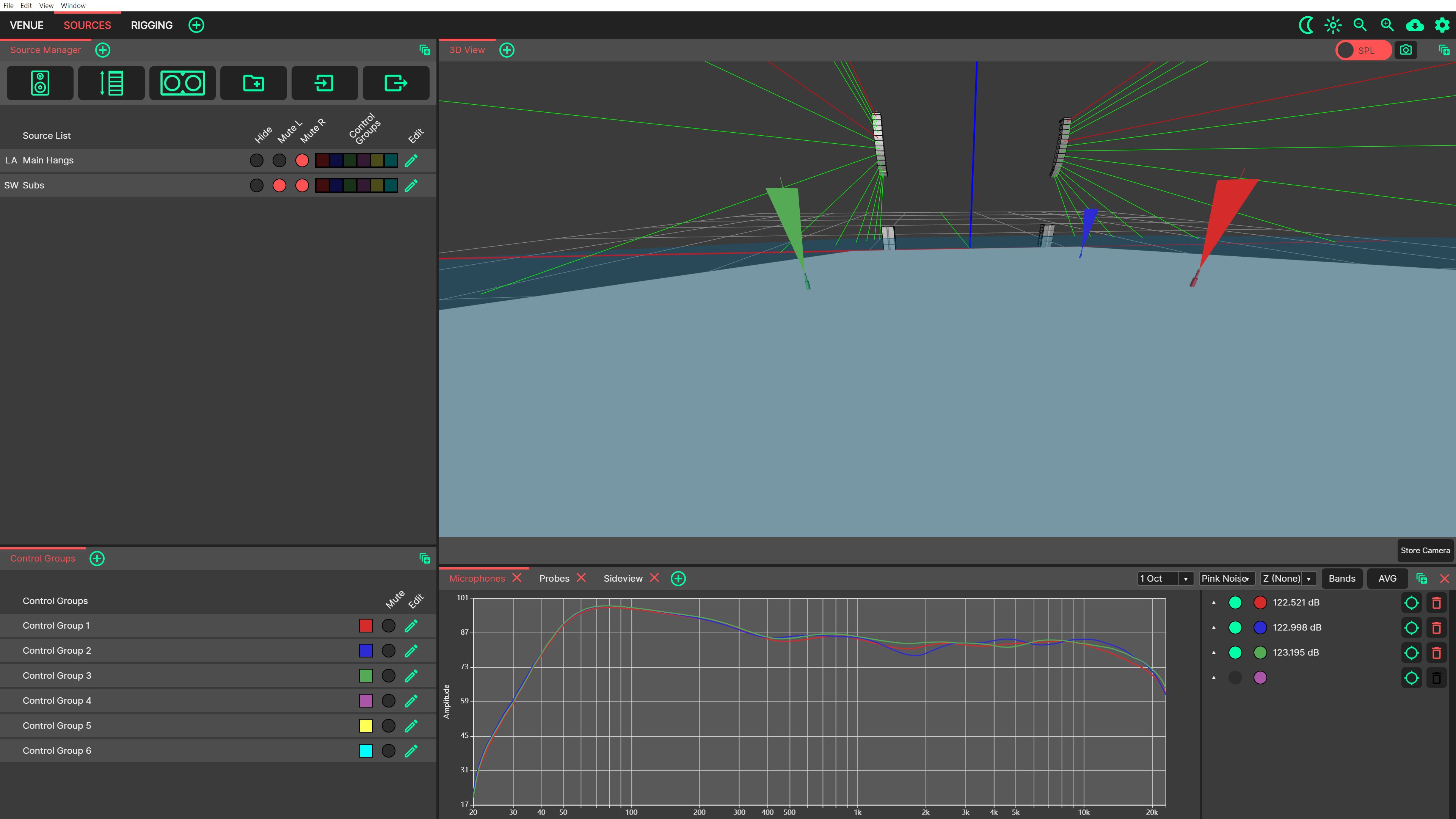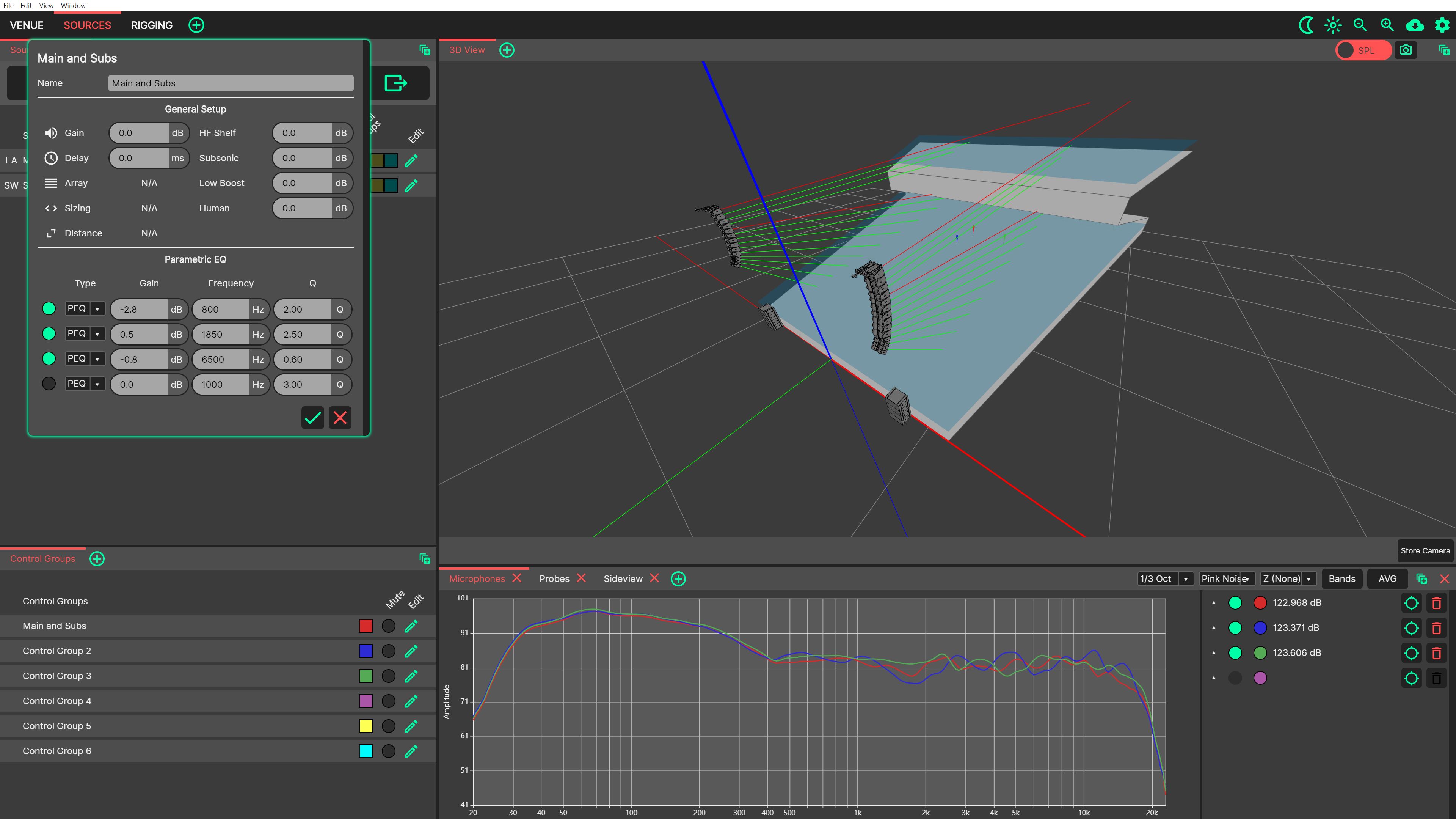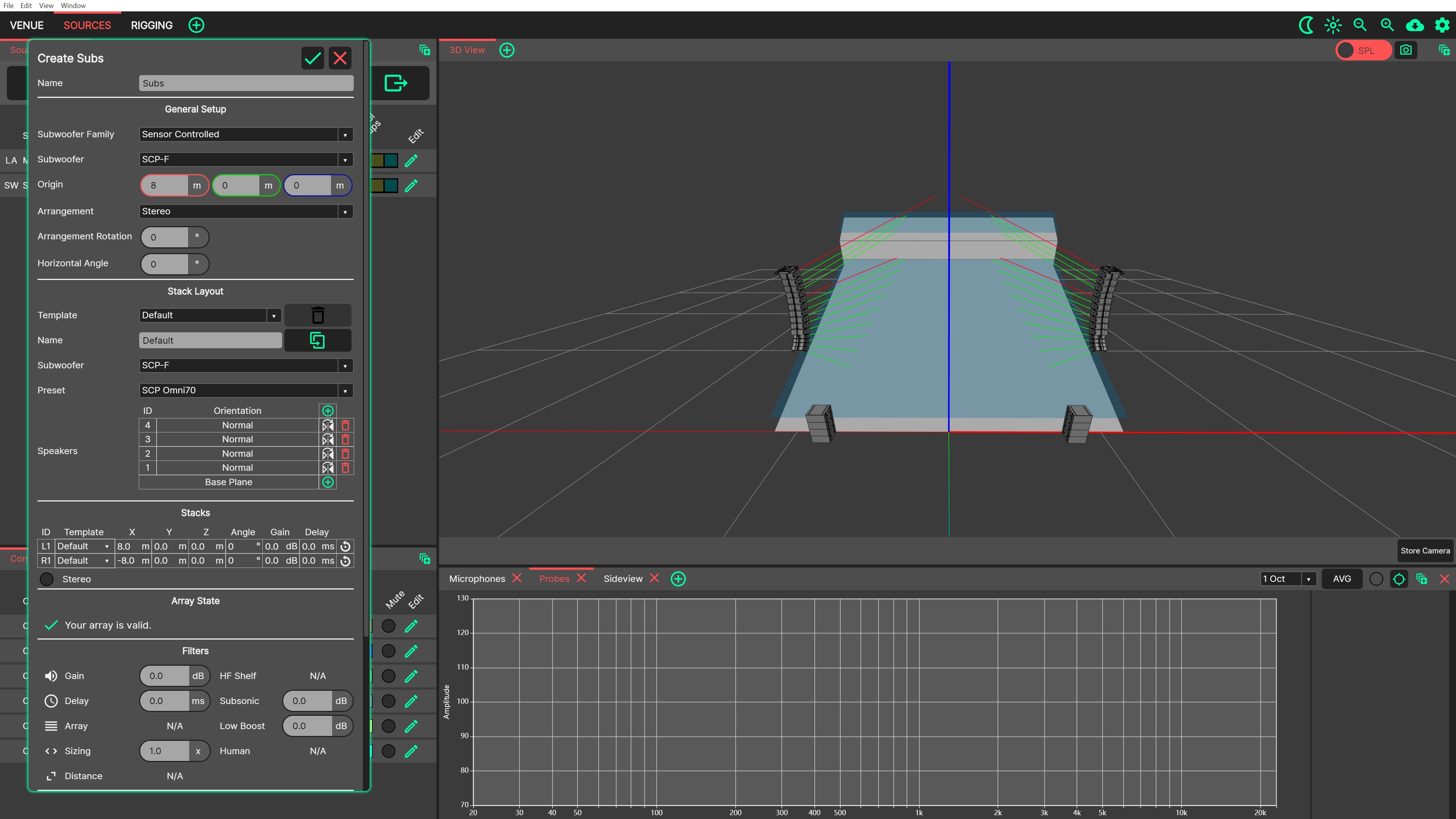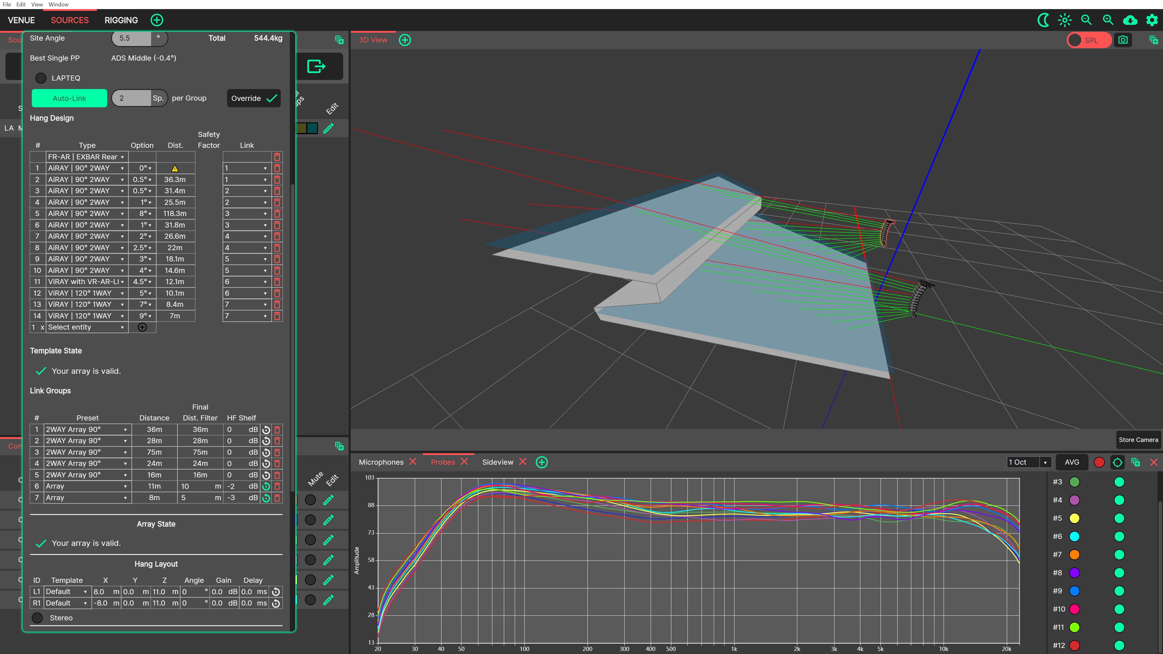 Use the Probes to refine the splay angles in the SVA Controller for the smoothest response. The HF Shelf and Distance Filter can also be adjusted for optimisation using the Link Groups table.